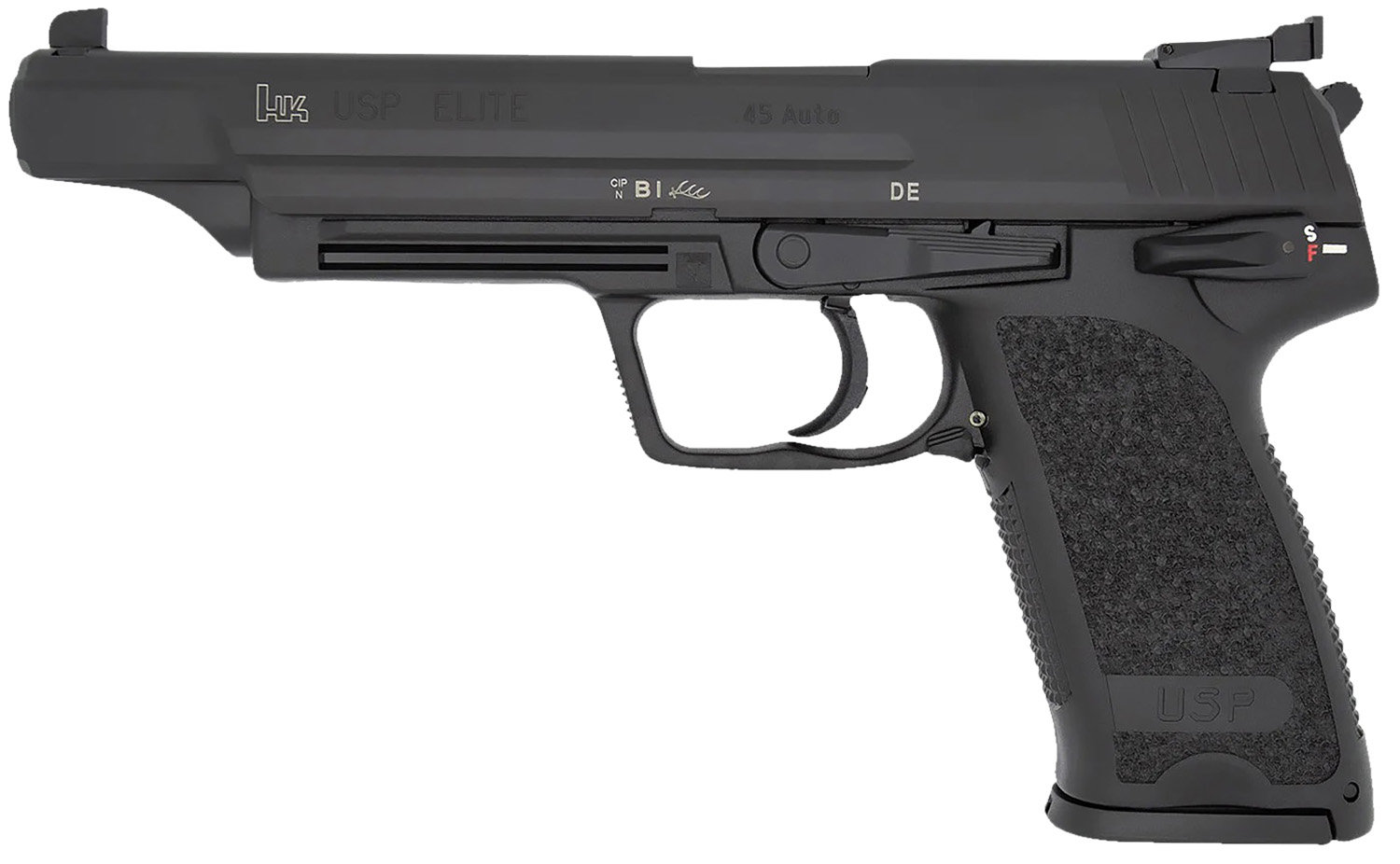 HK 81000368 USP V1 Elite 45 ACP 10+1 6.02″ Stainless Stainless Steel Barrel, Black Long/Serrated Steel Slide, Black Polymer Frame, Black Polymer Grip