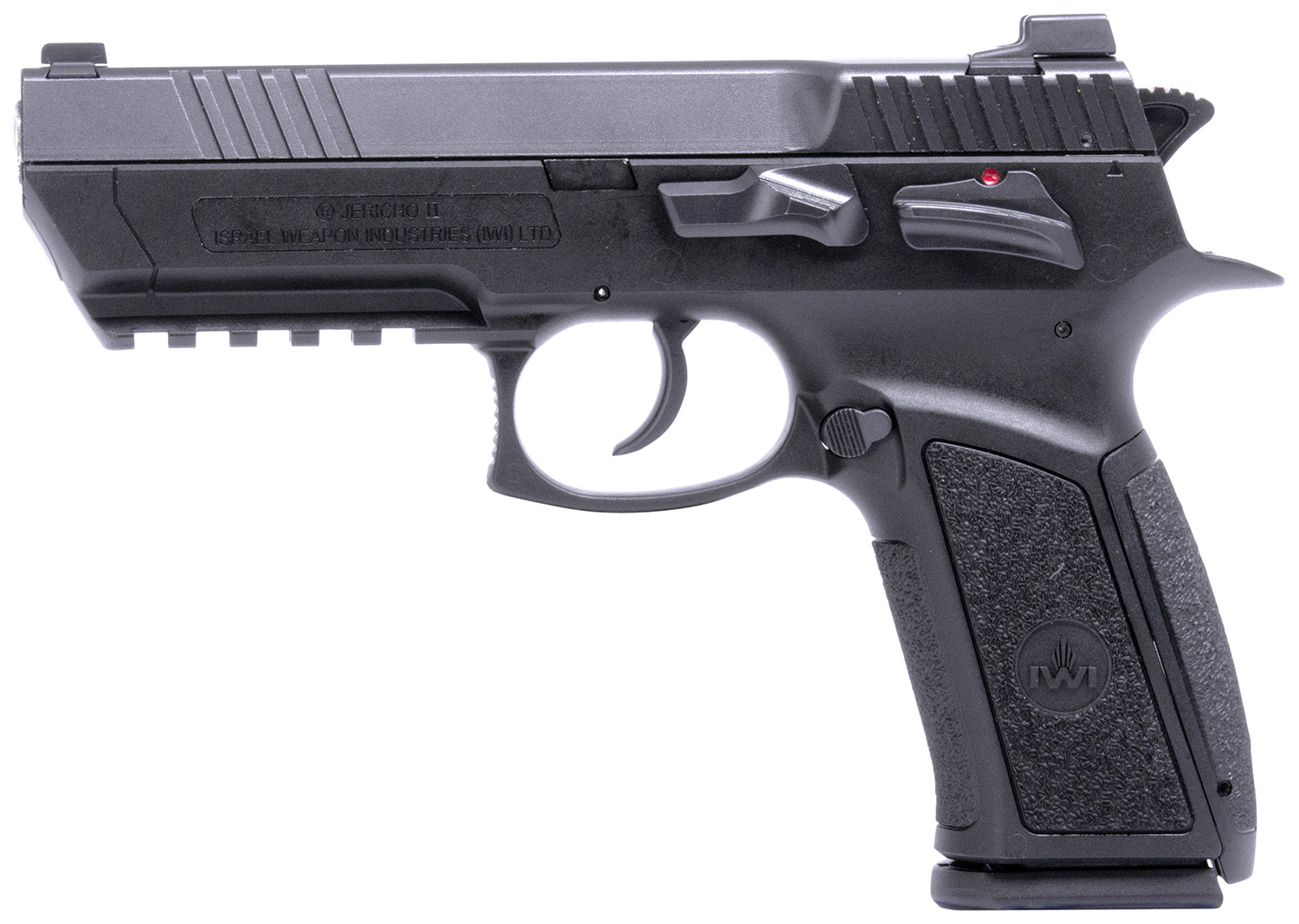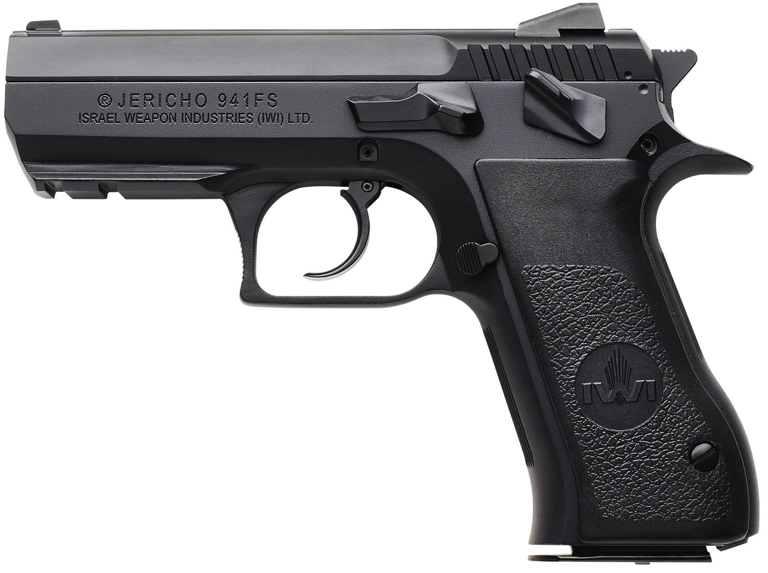IWI US J941F9ORP Jericho 941 Full Size Frame 9mm Luger 16+1 4.40″ Black Chrome Lined Steel Barrel, Black Serrated Steel Slide & Frame w/Beavertail & Picatinny Rail, Black Textured Grips