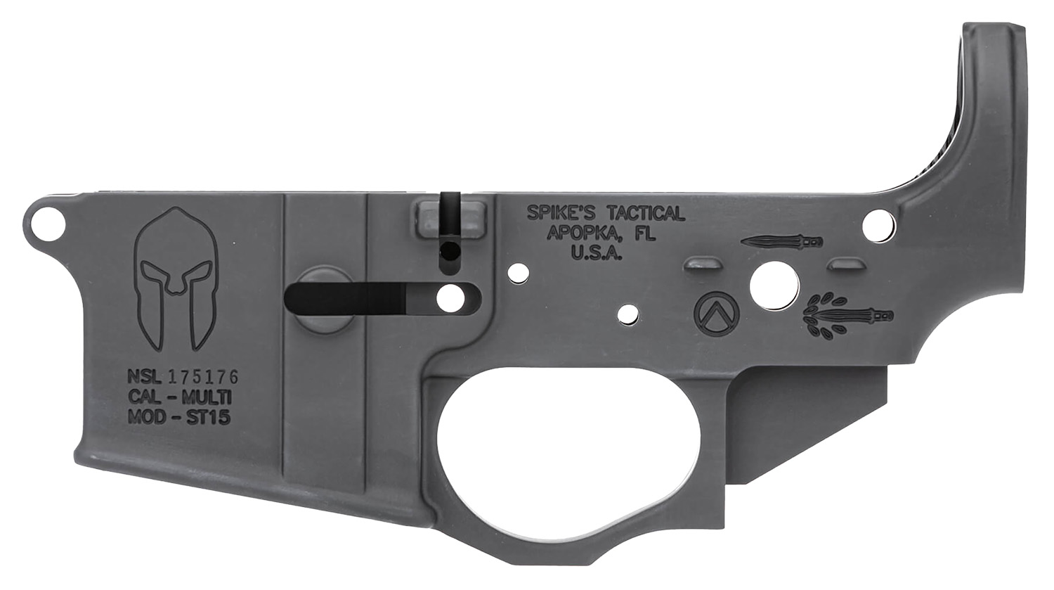 Spikes STLS021 Spartan Stripped Lower Receiver Multi-Caliber 7075-T6 Aluminum Black Anodized for AR-15