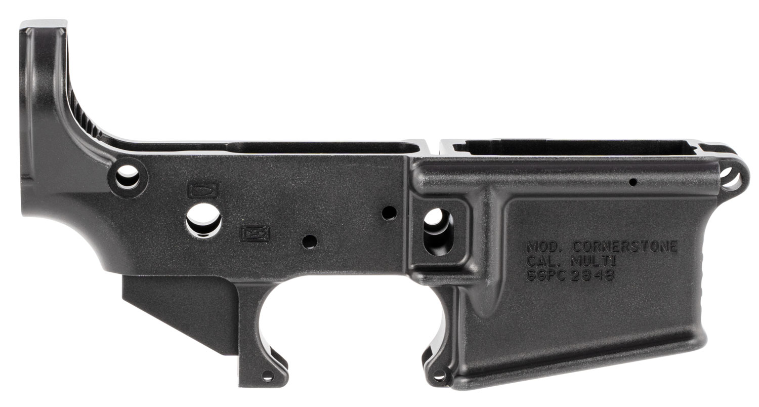 Grey Ghost Precision GGPC Cornerstone Lower Receiver Multi-Caliber, 7075-T6 Aluminum w/Black Anodized Finish, Nylon Tipped Tensioning Screw, Flared Mag Well