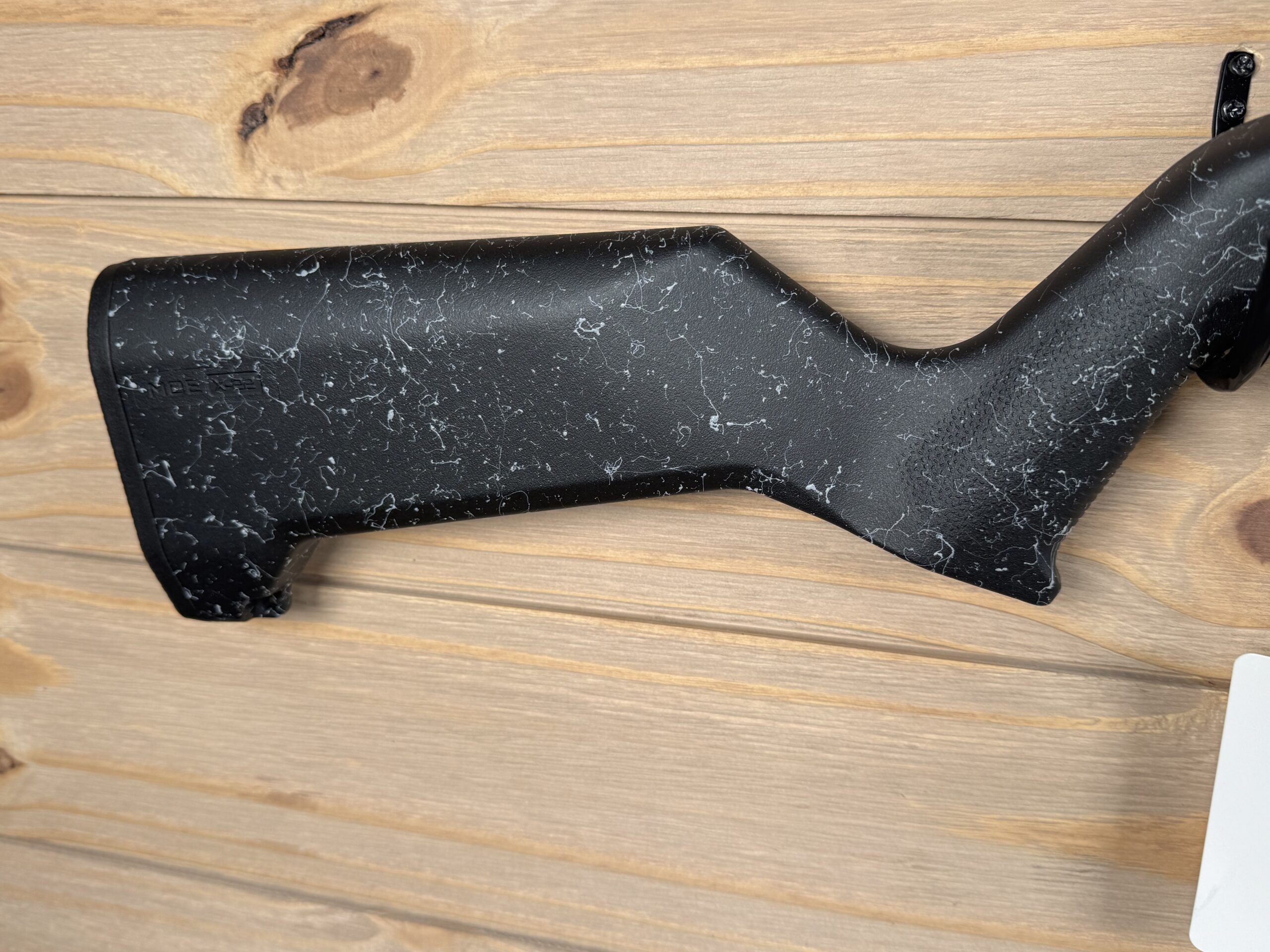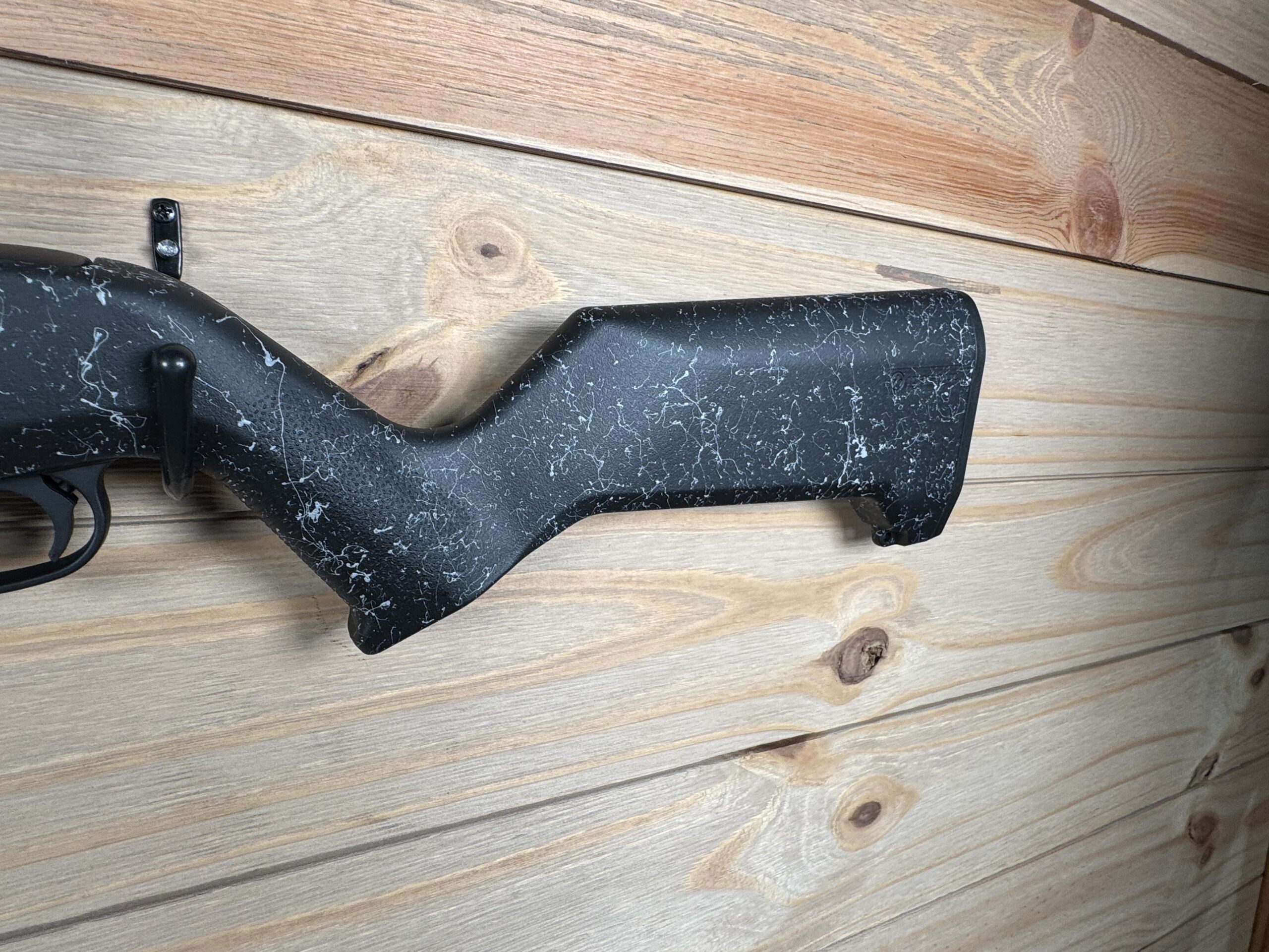 The 10/22 Carbon Fiber features a Magpul X-22 stock w/M-LOK slots; optional QD sling mounting capability; integrated storage in the grip; threaded barrel and a Positive, push-button, cross-bolt manual safety. Includes 10rd rotary magazine and a thread cap.