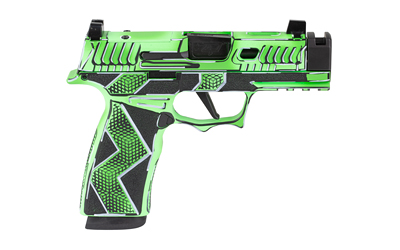 The Komodo Anime Series for the P365X brings bold, eye-catching style to a high-performance carry gun. Built on the Shark Coast Tactical Komodo grip module, these custom pistols come in lime green, bright blue, and grey, each featuring a cell-shaded cartoon paint finish for a unique anime-inspired look. The custom-cut, optic-ready (optic not included) slide pairs with a black compensated barrel for enhanced control and accuracy, while the double-stack magazines ensure maximum capacity. Designed for both function and flair, the Komodo Anime Series is perfect for those who want their everyday carry to stand out.